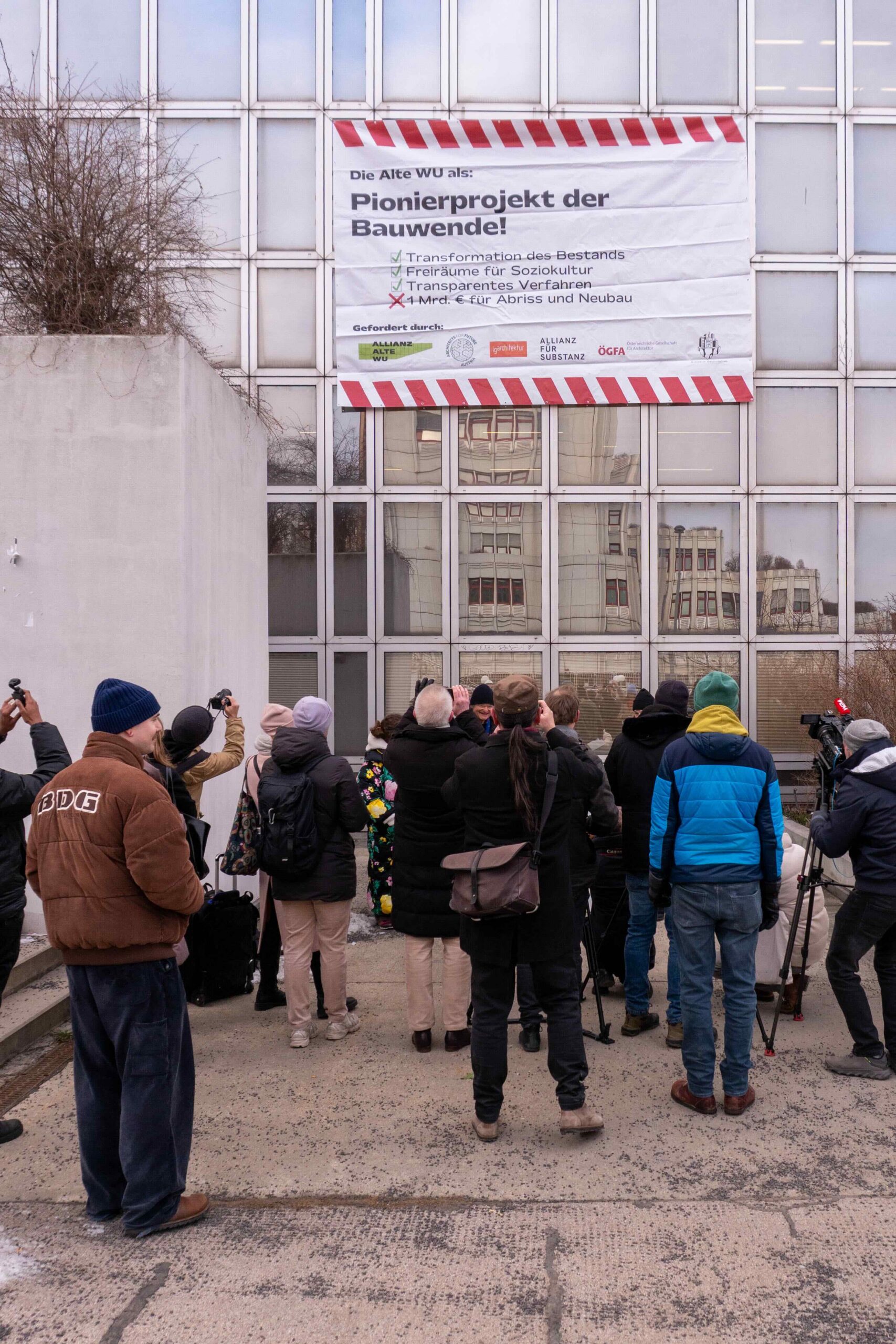 Die Allianz Alte WU wendet sich mit einer klaren Forderung an die BIG und die Politik: Ohne Freigabe des 1-Milliarden-Euro-Bauprojekts durch das Finanzministerium und dem Ergebnis des Architektur-Wettbewerbs darf es keinen Abriss geben.